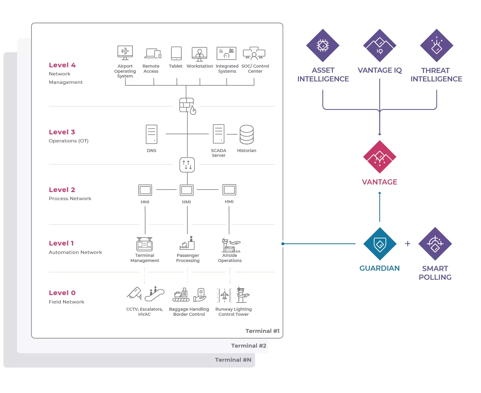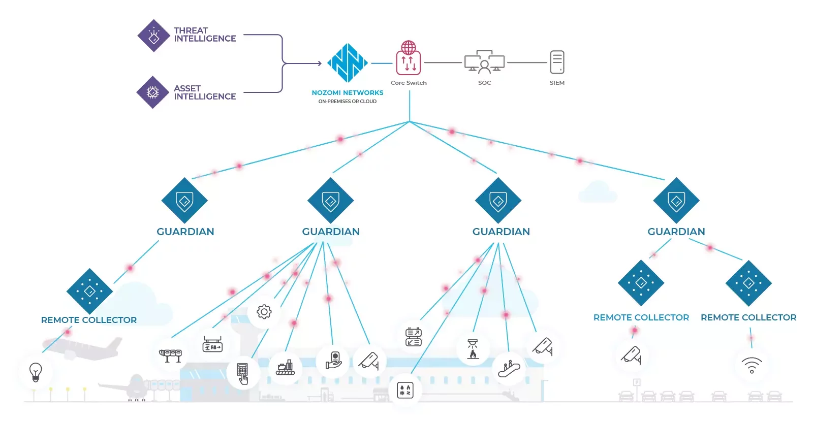 L'architecture flexible et évolutive de Nozomi Networks, ainsi que ses intégrations, facilitent l'adaptation de notre solution à tout environnement aéroportuaire.