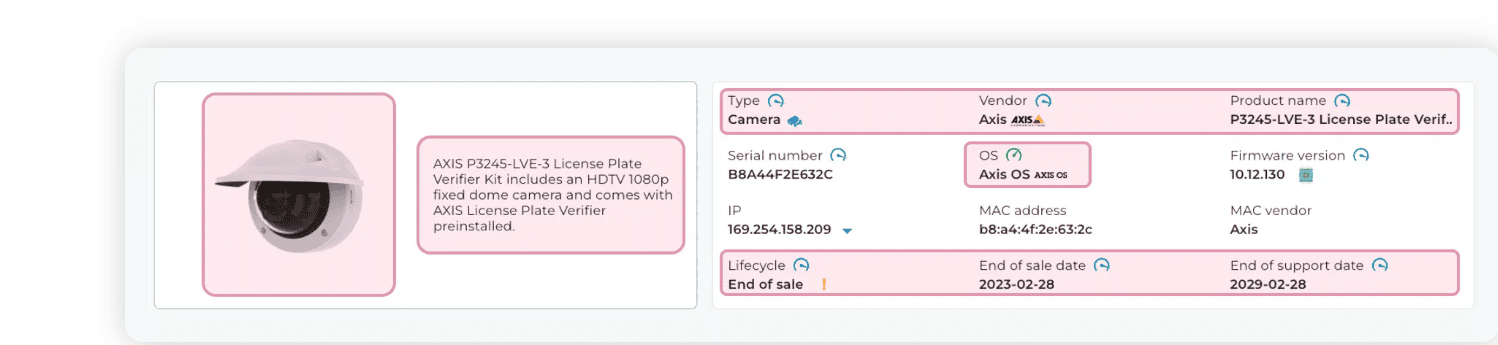 Les informations surlignées en rouge proviennent de la correspondance avec l'intelligence des actifs.
